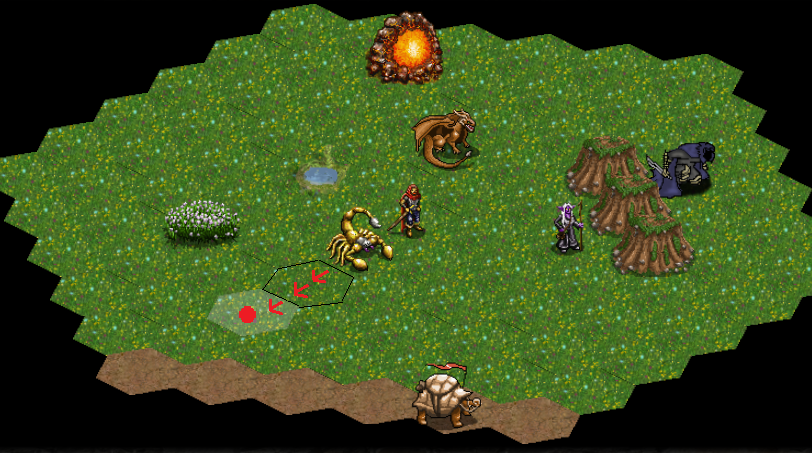Ici, rien n'empêche le scorpion de reculer et il se retrouvera sur la case en surlignance après l'attaque.