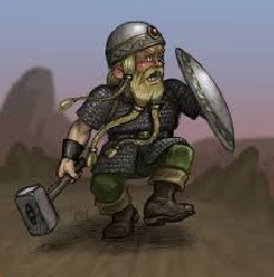 Presque aussi larges qu'ils sont hauts, les fiers aventuriers nains à la barbe fournie et aux sourcils broussailleux sont en général des combattants féroces et tenaces, mus par un grand sens de l'honneur et du clan - ainsi, disent les mauvaises langues, que par une atavique soif de l'or. Ils portent le plus souvent de lourdes armures de plate forgées par leur soin, et gardent leurs haches de guerres aiguisées avec un soin jaloux. Qu'ils viennent des profondes mines de leur cité d'Octobian ou qu'ils aient franchi les Mers jusqu'aux rivages de l'Île, ce sont des artisans plus que compétents, et bien qu'ils soient dur en affaire, ils se révèlent souvent des marchands honnêtes. Courageux, les nains affectionnent la bagarre, surtout après quelques bières, dont ils font une consommation importante.