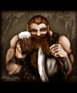 | Presque aussi larges qu'ils sont hauts, les fiers aventuriers nains à la barbe fournie et aux sourcils broussailleux sont en général des combattants féroces et tenaces, mus par un grand sens de l'honneur et du clan - ainsi, disent les mauvaises langues, que par une atavique soif de l'or. Ils portent le plus souvent de lourdes armures de plate forgées par leur soin, et gardent leurs haches de guerres aiguisées avec un soin jaloux. Qu'ils viennent des profondes mines de leur cité d'Octobian ou qu'ils aient franchi les Mers jusqu'aux rivages de l'Île, ce sont des artisans plus que compétents, et bien qu'ils soient dur en affaire, ils se révèlent souvent des marchands honnêtes. Courageux, les nains affectionnent la bagarre, surtout après quelques bières, dont ils font une consommation importante. |
