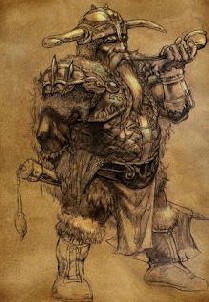 Presque aussi larges qu'ils sont hauts, les fiers aventuriers nains à la barbe fournie et aux sourcils broussailleux sont en général des combattants féroces et tenaces, mus par un grand sens de l'honneur et du clan - ainsi, disent les mauvaises langues, que par une atavique soif de l'or. Ils portent le plus souvent de lourdes armures de plate forgées par leur soin, et gardent leurs haches de guerres aiguisées avec un soin jaloux. Qu'ils viennent des profondes mines de leur cité d'Octobian ou qu'ils aient franchi les Mers jusqu'aux rivages de l'Île, ce sont des artisans plus que compétents, et bien qu'ils soient dur en affaire, ils se révèlent souvent des marchands honnêtes. Courageux, les nains affectionnent la bagarre, surtout après quelques bières, dont ils font une consommation importante.