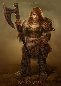 Presque aussi larges qu'ils sont hauts, les fiers aventuriers nains à la barbe fournie et aux sourcils broussailleux sont en général des combattants féroces et tenaces, mus par un grand sens de l'honneur et du clan - ainsi, disent les mauvaises langues, que par une atavique soif de l'or. Ils portent le plus souvent de lourdes armures de plate forgées par leur soin, et gardent leurs haches de guerres aiguisées avec un soin jaloux. Qu'ils viennent des profondes mines de leur cité d'Octobian ou qu'ils aient franchi les Mers jusqu'aux rivages de l'Île, ce sont des artisans plus que compétents, et bien qu'ils soient dur en affaire, ils se révèlent souvent des marchands honnêtes. Courageux, les nains affectionnent la bagarre, surtout après quelques bières, dont ils font une consommation importante.